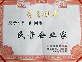 - 6、2011年董事長王臣被評為2011年度秦皇島十大經(jīng)濟(jì)人物